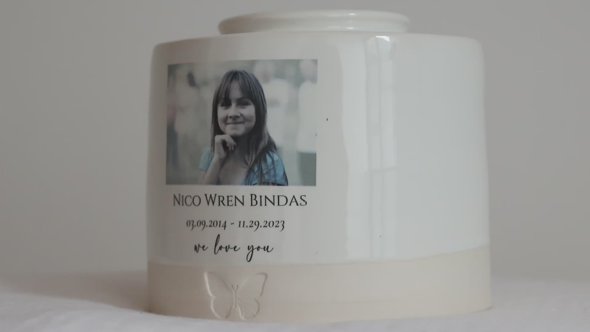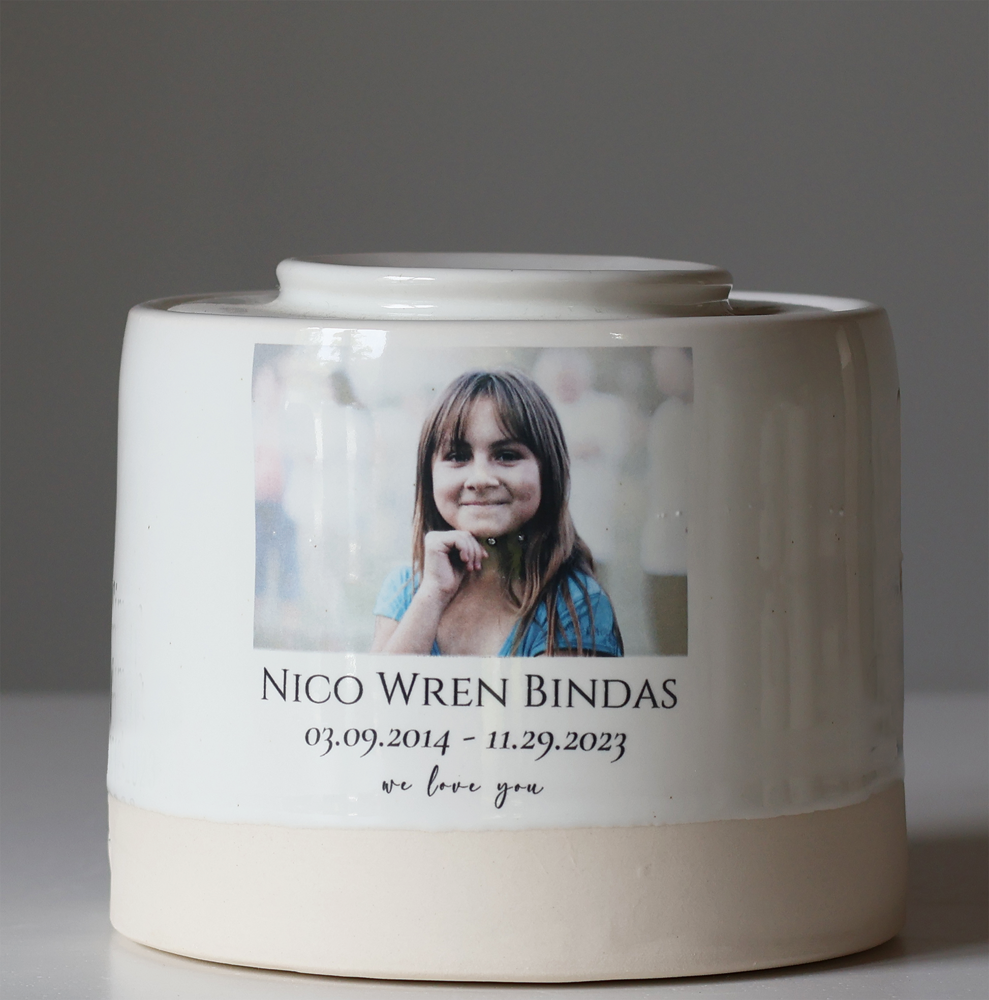 Large Low Size Urn. Child Cremation Urn with Custom Photo