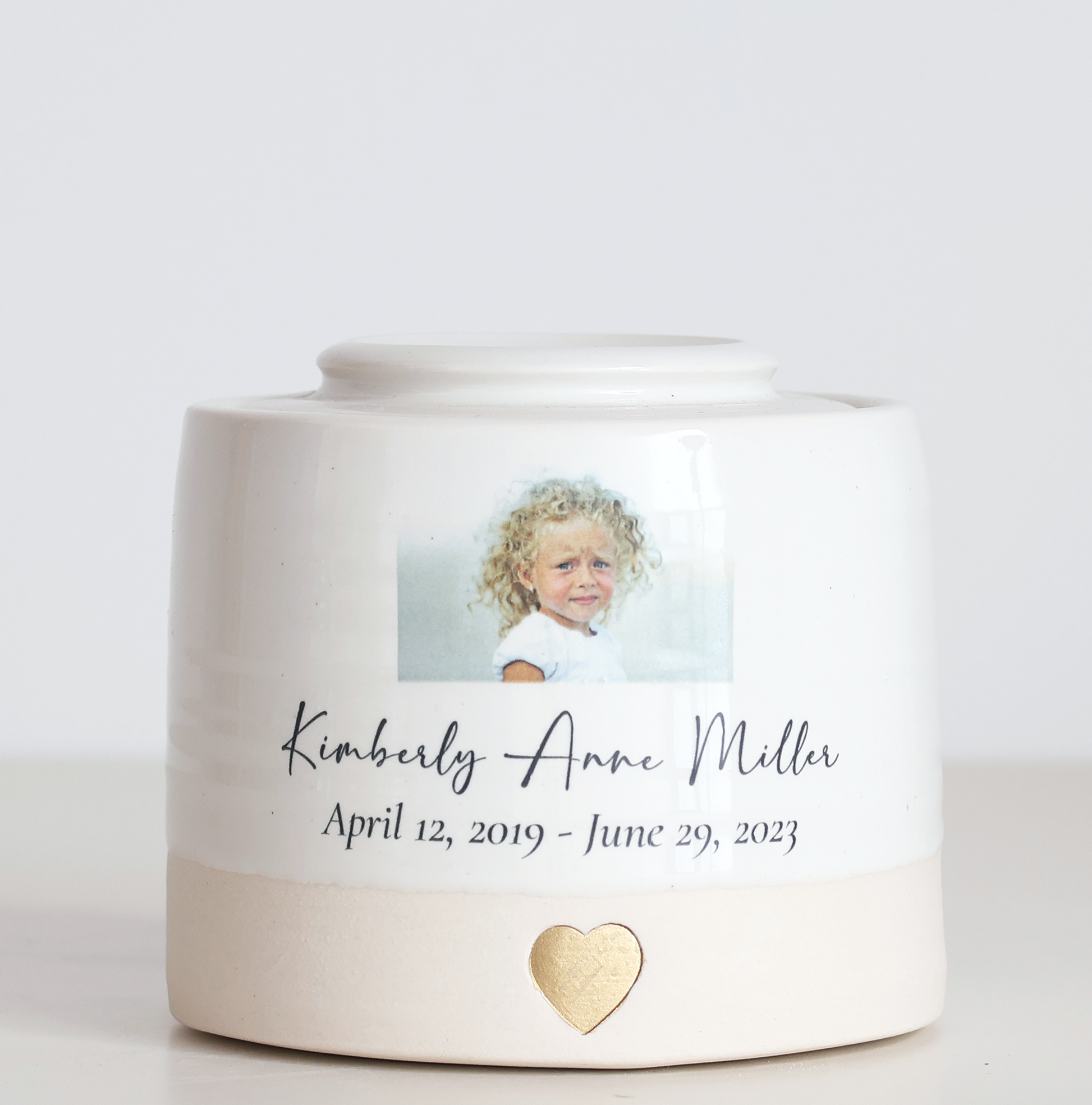Medium Low Size Urn. Child Cremation Urn with Custom Photo