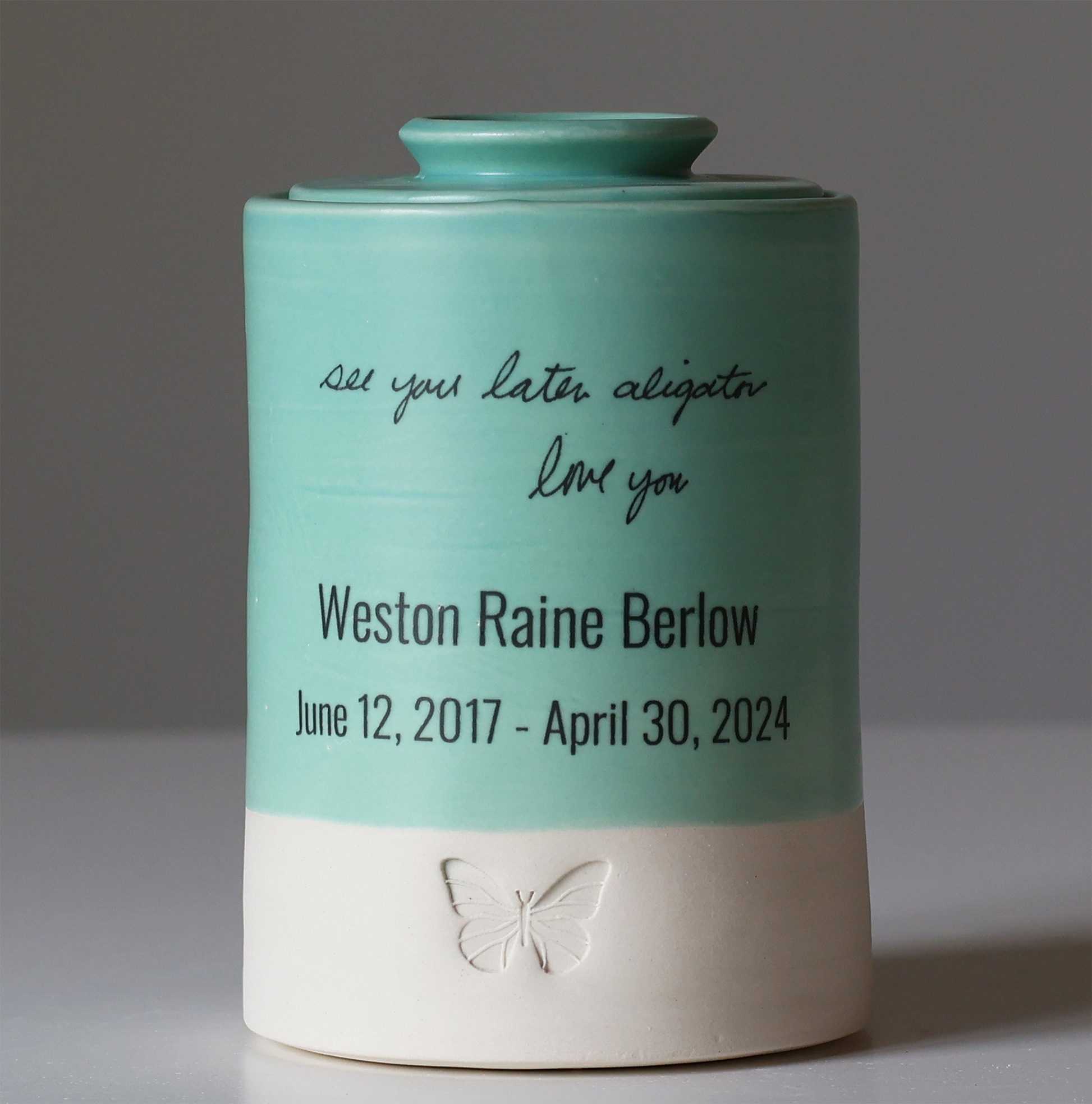 Medium Tall Size Urn. Infant Custom Cremation Urn with Handwritten Note